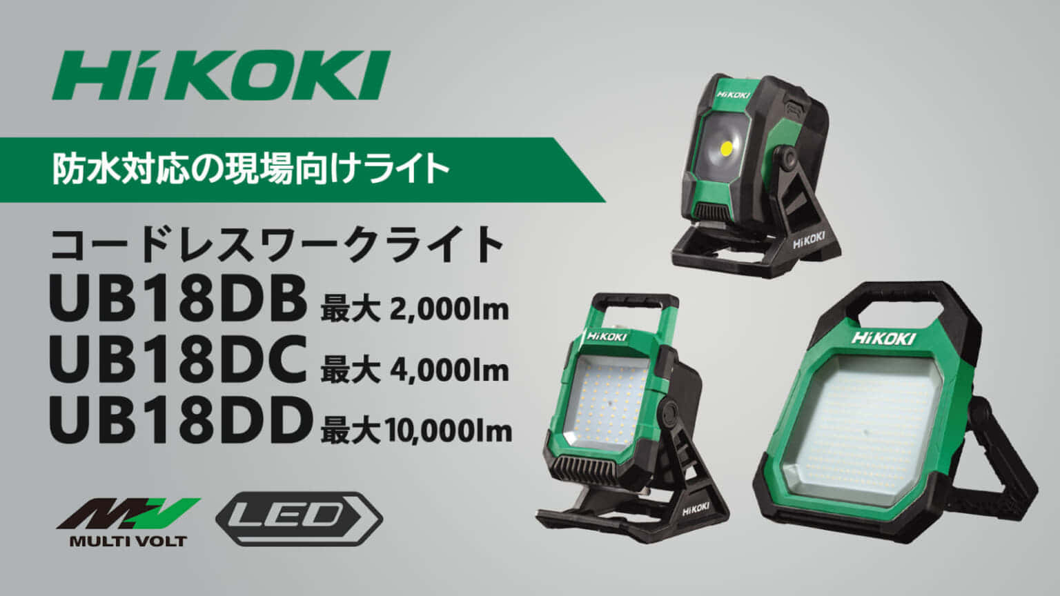 HiKOKI(ハイコーキ)新製品0HiKOKI UB18DE コードレストーチライトを発売、ちょっとした作業で活躍する小型ライトUB18DEは、2段階調光機能を搭載するスポット照射タイプのコードレスLEDライトです。最大光束量は250lmと従来モデルUB18DELから大きく向上しており、弱モード時/BSL36B18バッテリー装...