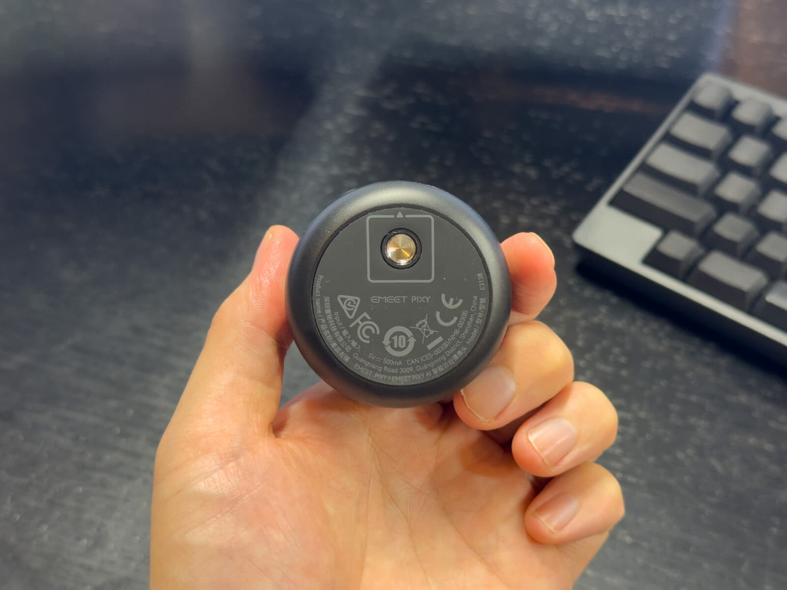 EMEET PIXYは、カメラヘッドを下向きに倒すと自動的にカメラ機能がオフになる仕組みを備えています。
