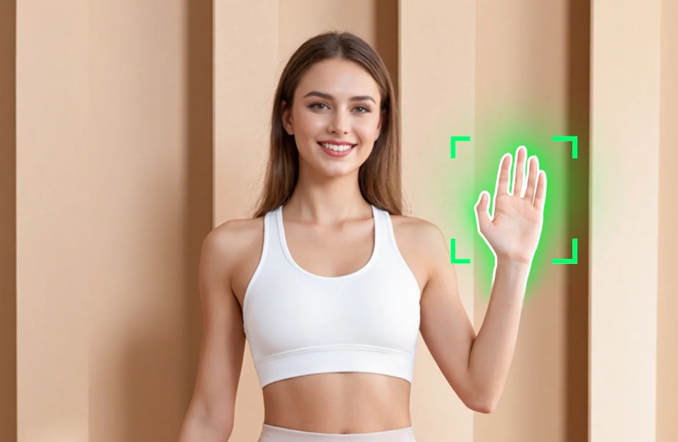 EMEET PIXYには、手の動きだけでカメラを操作できるジェスチャーモードが用意されています。カメラに向かって開いた手のひらを数秒見せるとジェスチャーを認識し、AIトラッキングのオン/オフやフレーミングの切り替えを行えます。