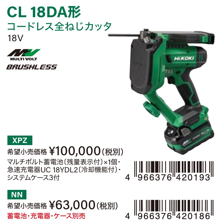 電動工具ブランド HiKOKI (ハイコーキ)を展開する工機ホールディングス株式会社は、コードレス全ねじカッタ CL18DAを発売します。