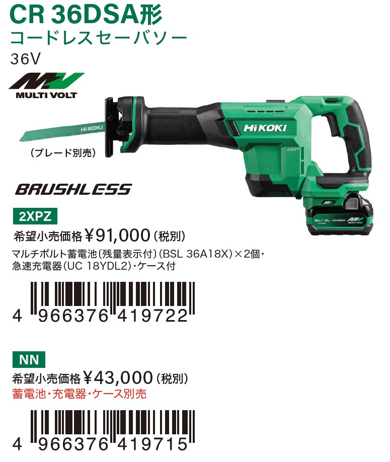 電動工具ブランド HiKOKI (ハイコーキ)を展開する工機ホールディングス株式会社は、コードレスセーバソー CR36DSAを発売します。