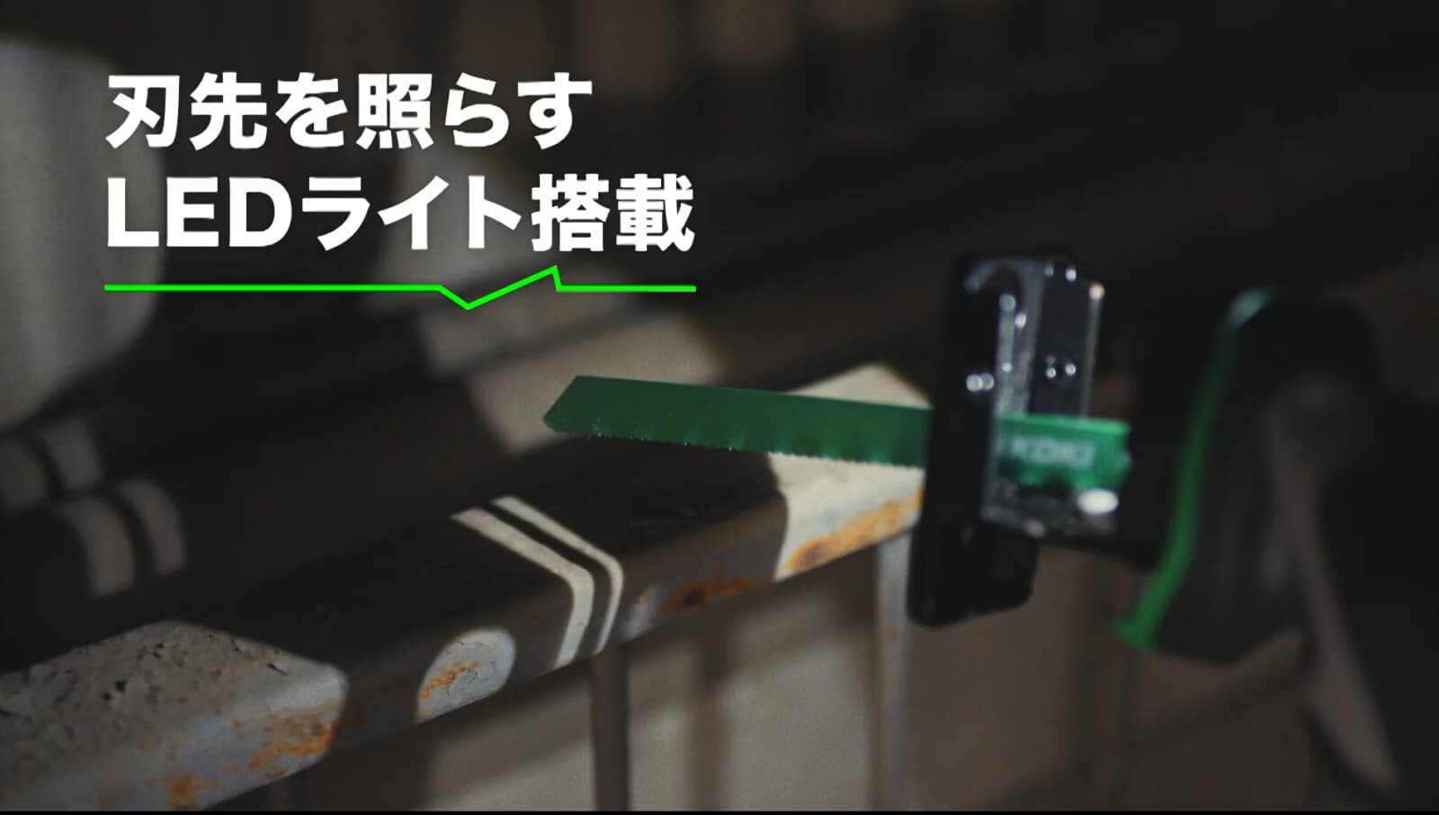 ブレードの刃先を明るく照らし、暗い現場でも作業がしやすい。