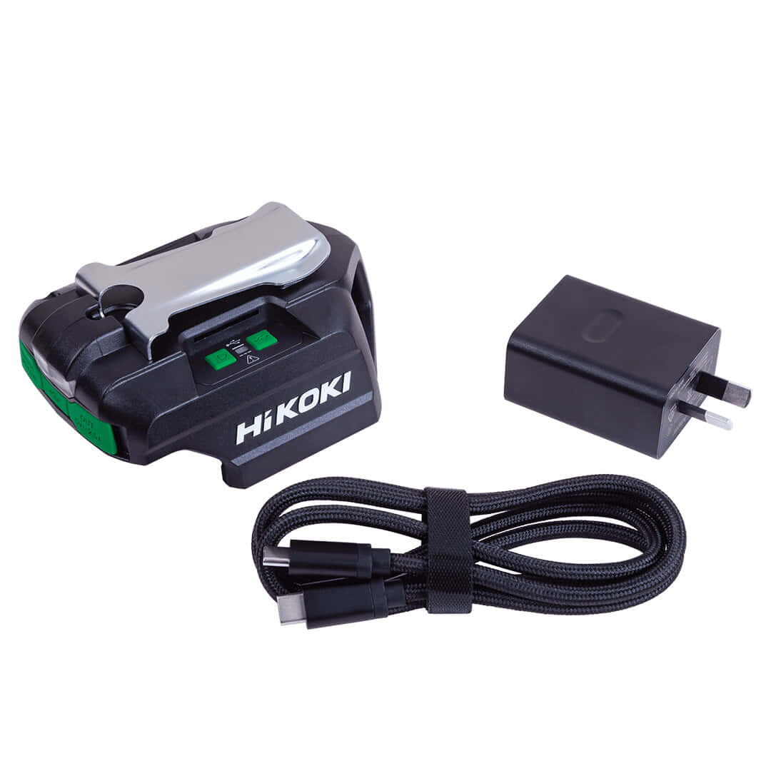 USB PDによる65Wの入出力ポートを備えており、ノートPCやスマートフォンへの給電が可能で付属品のUSB充電器の接続によってHiKOKIバッテリーへの充電も可能な仕様を備えているのが特徴です。