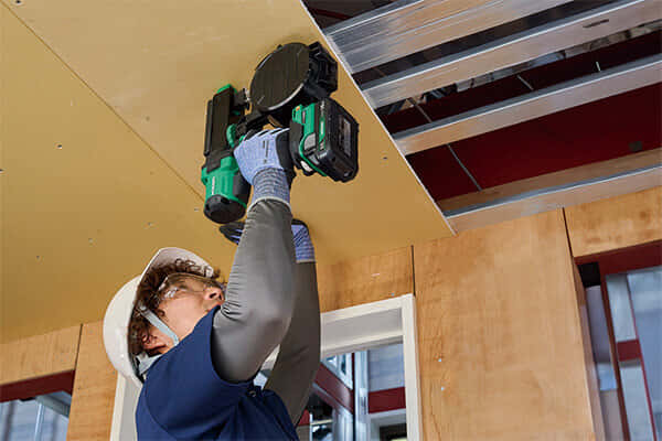 ロール連結ねじ(シート連結)の締め付けができる石こうボード張りに特化した電動工具で、質量2.1kgの軽量設計に、手に近い重心設計で手首の疲労を軽減できる設計構造を搭載しています。