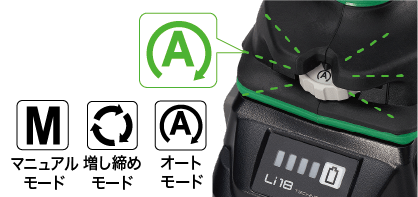オートモードでは自動的にビットが回転し、トリガ操作なしでもねじ締め作業が可能です。