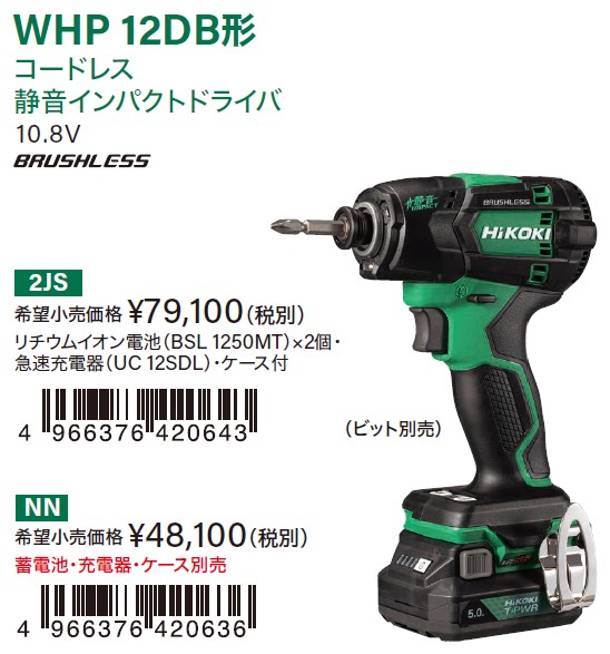 販売仕様は、バッテリー充電器ケースが付属するWHP12DB(2JS)と本体のみのWHP12DB(NN)で販売します。