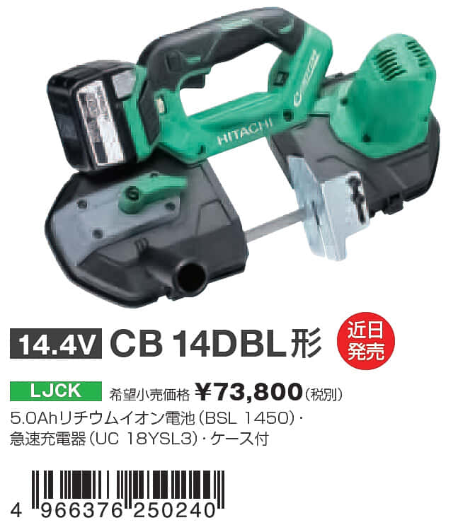 日立工機株式会社(本社:東京都港区)は、2015年4月にクラスNo.1の切断性能と作業性を実現したコードレスロータリバンドソー CB18DBLの発売する。帯のこ周長900mm、のこ車径108mmの採用により 最大83mmの材料を切断可能。CB18DBLの本体希望小売価格は45,700円(税別)