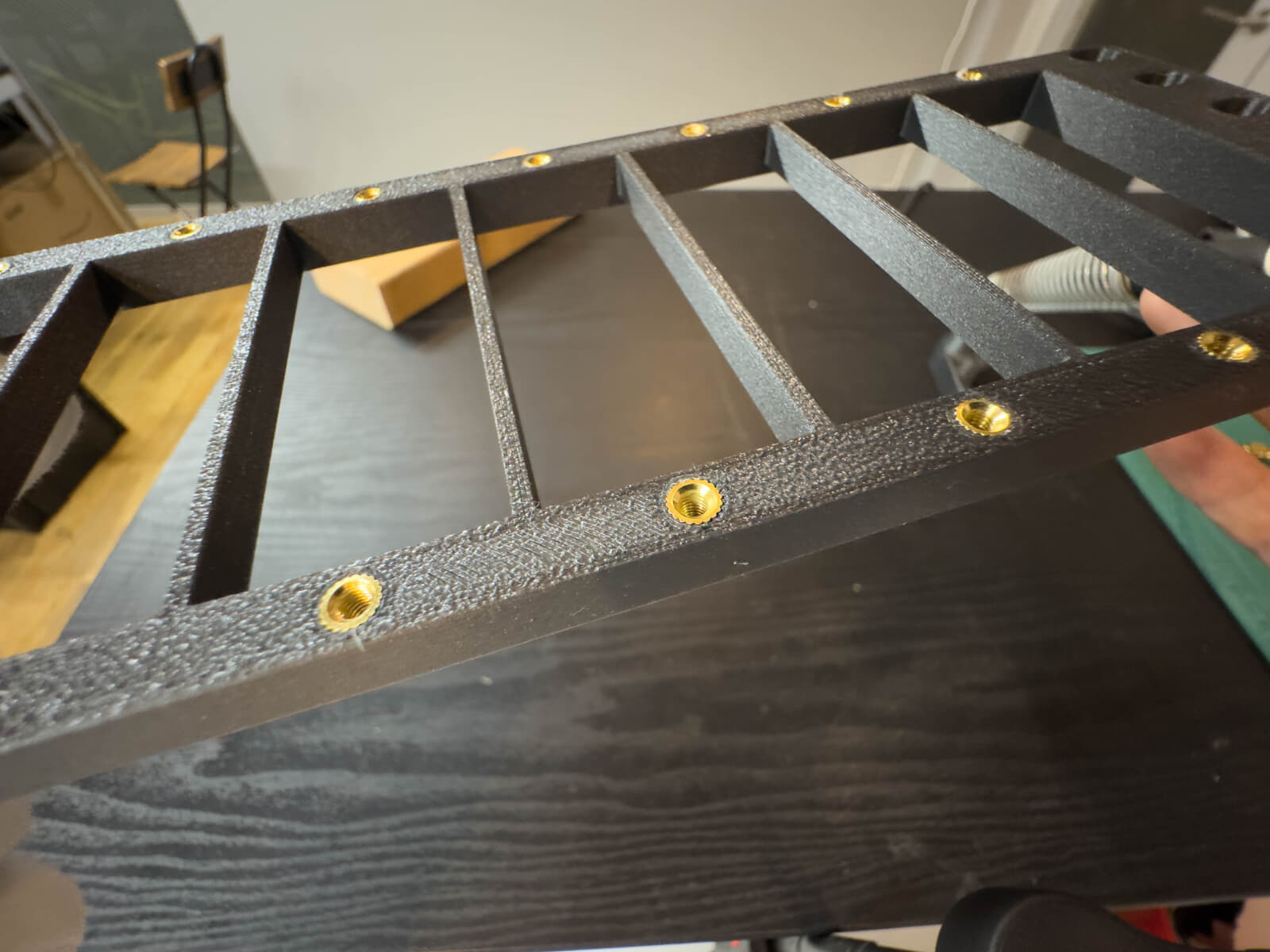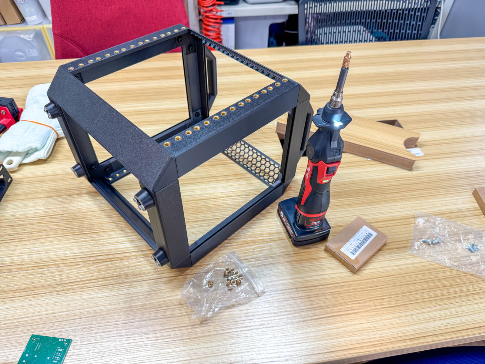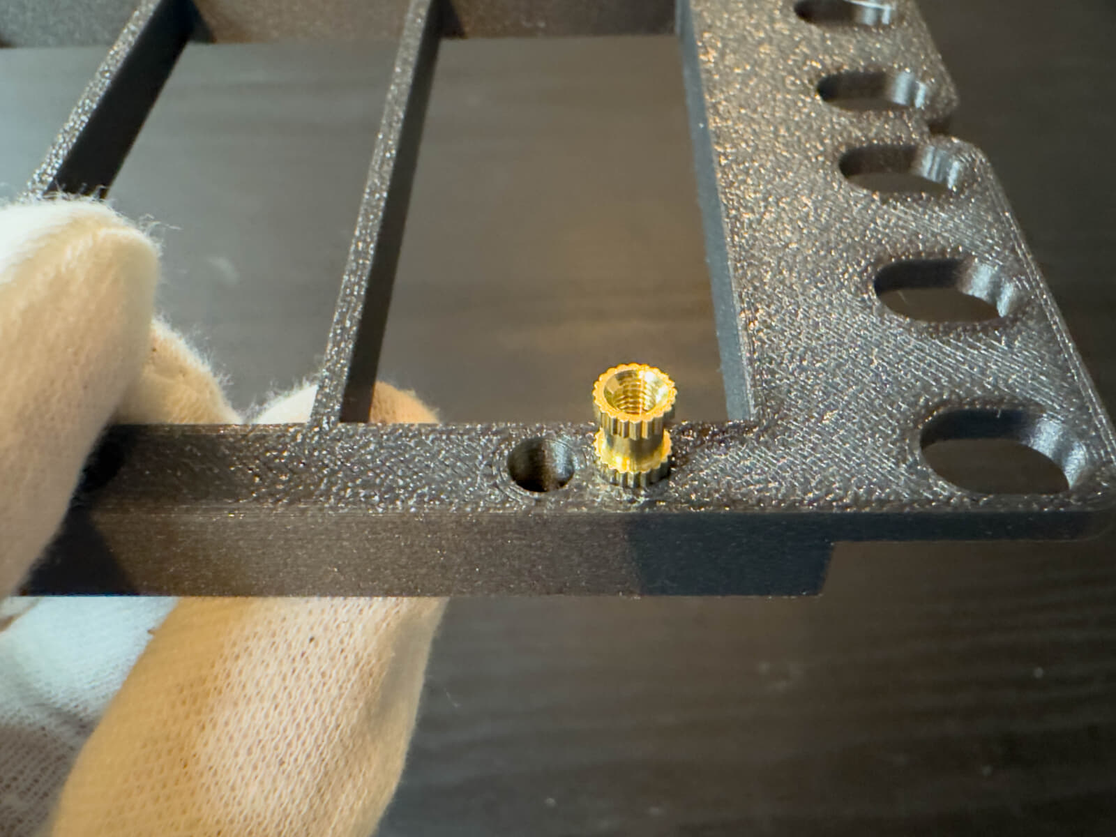 と言うわけで、14個のインサートナットを圧入したのがこちらです。やはりインサートナット専用のチップを使った方が綺麗に圧入できるので見た目も美しく仕上がります。