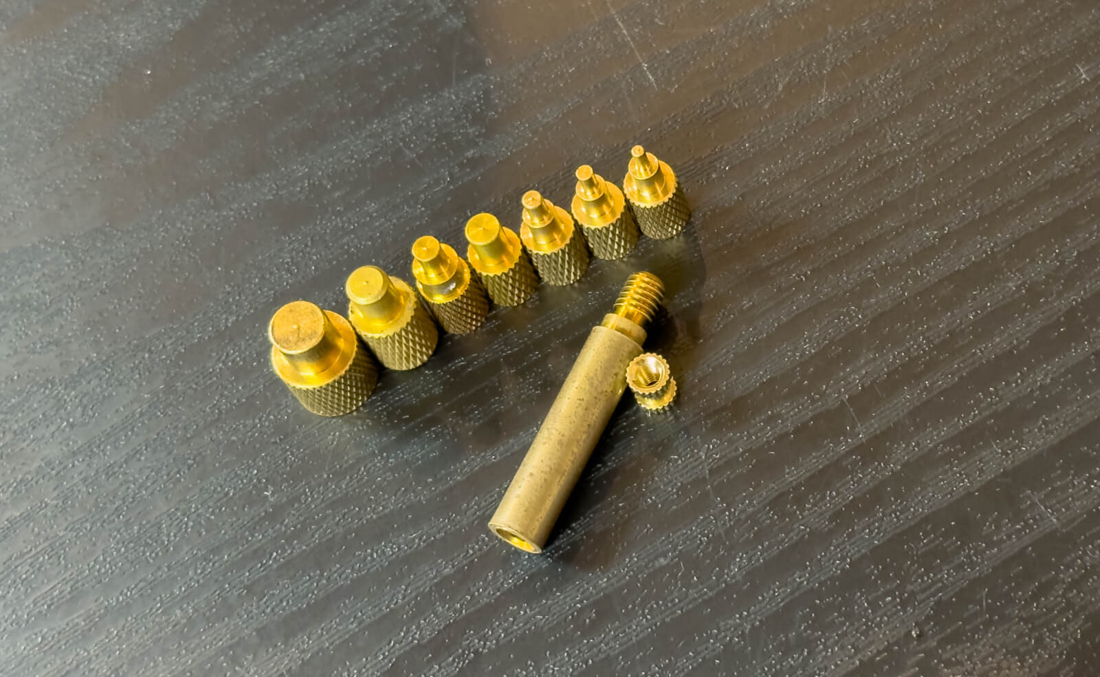 最後に、圧入を行う径のインサートチップ先端部を取り付けます。この先端部が万が一固着してしまうと、インサートチップ自体が保護パイプから外れなくなってしまうので、先端部の締付は軽くでOKです。