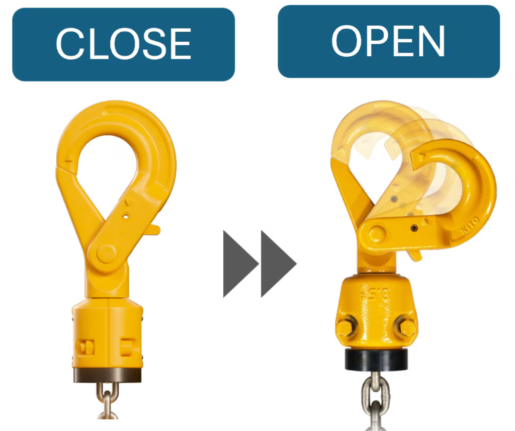 つり荷をフックにかけやすく、かけ外れを防止します。