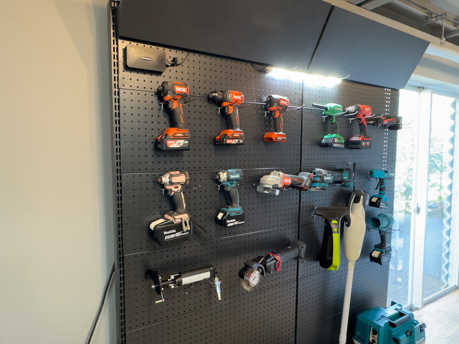 普段、電動工具などの工具類は工具箱に収納したり、作業台や工具棚に置いて保管している方が多いと思います。実用性を考えるとそれがベターなのですが、電動工具販売店のように陳列棚に並べて展示する形で保管してみたい、と思ったことがある方も少なくないのではないでしょうか。