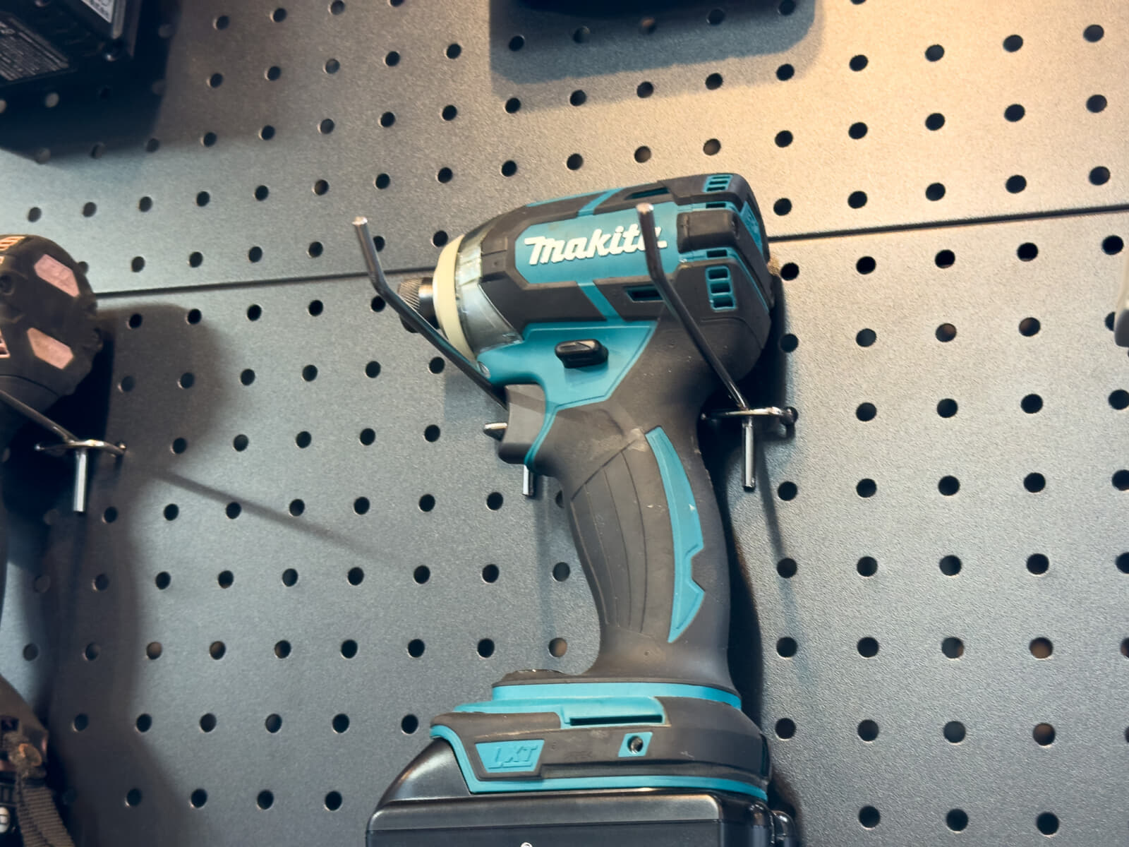 フックを2個使えば、充電式インパクトドライバも簡単に収められます。
