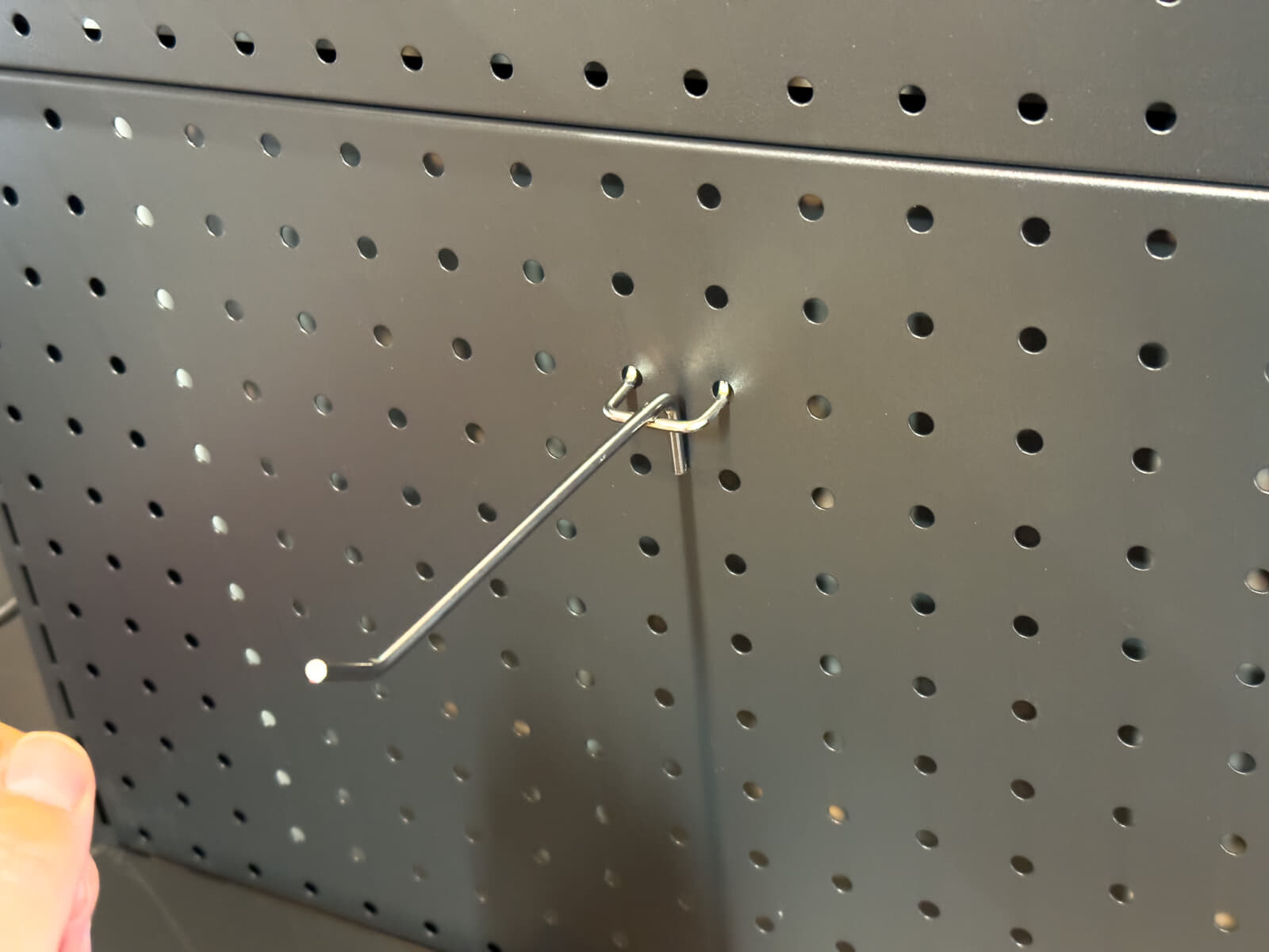 このラックには、有孔ボードの穴に取り付けるフックが30個付属しています。穴に通すだけで、簡単にフックを固定できます。