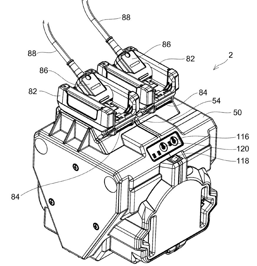 現在の電動工具用バッテリの充電電力は概ね300W程度の物が主流ですが、今後、バッテリの大容量化が一般化すればより速い充電器の登場が求められ、その場合には1kWクラスの充電器が必要になるケースも想定されます。その場合、充電器を複数個用意すると、日本における1,500Wの電力量では大本のブレーカーが落ちてしまう可能性も高いため、そのようなトラブルを防ぐための特許と考えらえます。