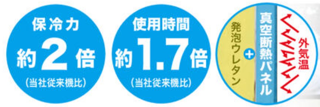 「真空断熱パネルの採用で保冷・保温力が約2倍に向上」