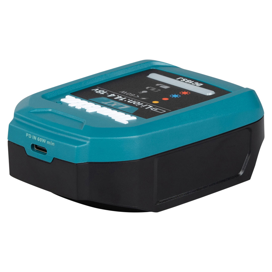DC18SJは、USB Type-C端子を備えた14.4V/18Vバッテリ用の小型充電アダプタです。