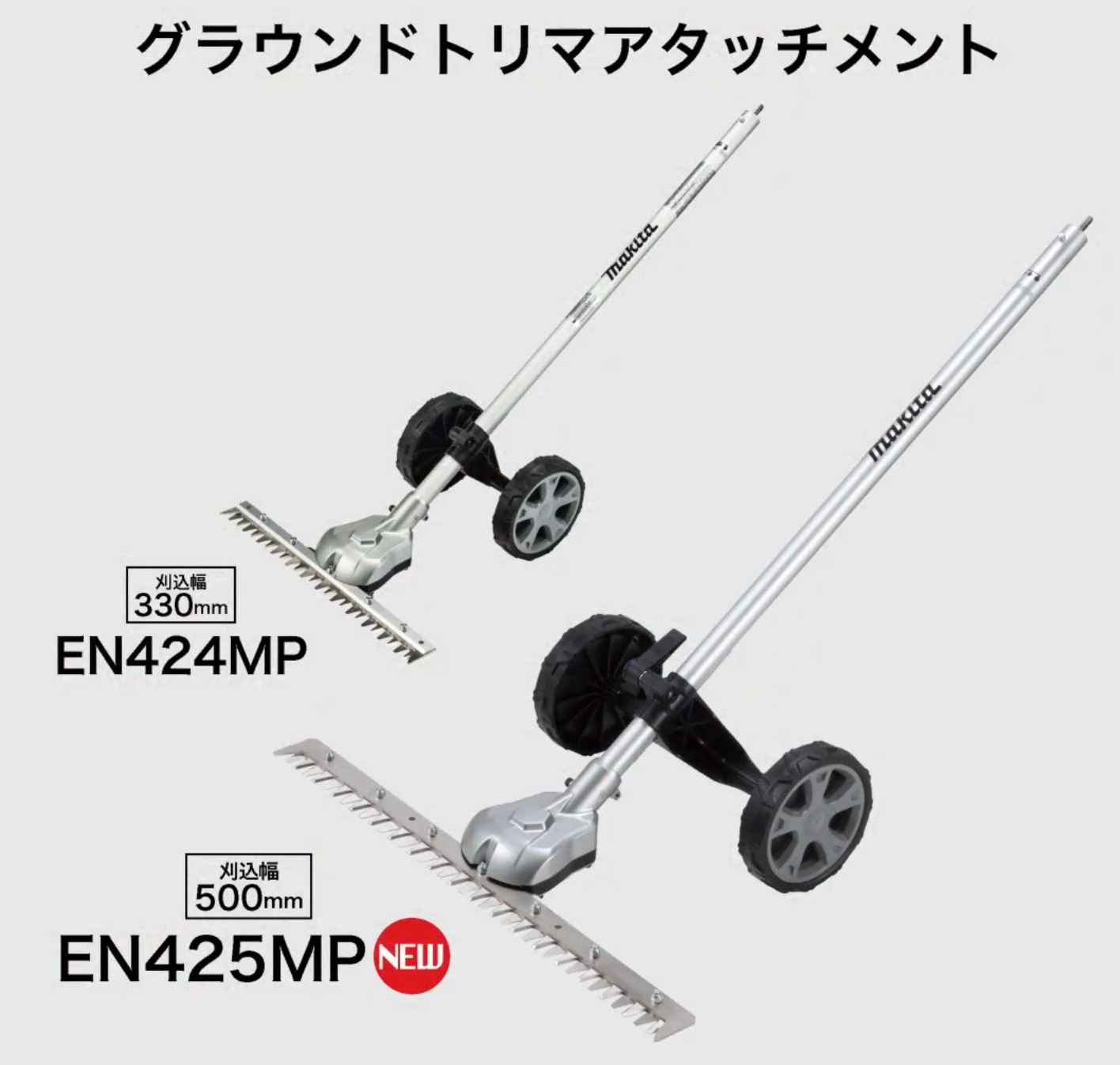 EN425MPは、2023年に発売したグランドトリマアタッチメント EN424MPの刈込幅を500mmにした大型モデルです。