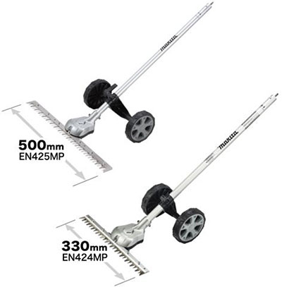 マキタのT字型ヘッジトリマ刃のグランドトリマアタッチメントは、2023年に刈込幅330mm仕様のEN424MPが発売しており、今回のEN425MPは刈込幅が500mmに大型化したモデルとなっています。