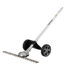 ヘッジトリマ刃は、従来のチップソーとは違い異物に触れた際の石飛びなどの危険性が軽減されているのが特徴です。また、タイヤを装備しているので、掃除機のように前後に動かすだけで草刈作業を行うことができます。チップソー刃よりも作業効率に優れナイロンコードよりも手軽で使い勝手に優れる利点もあります。