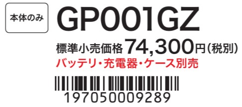 - GP001GZ 本体のみ 希望小売価格74,300円(税抜)