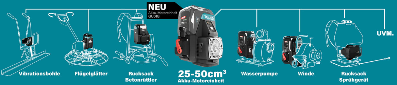 情報の初出は米国ロサンゼルスで開催されたWorld of Concrete 2026が初披露であり、その後、マキタ世界各国でBattery Powered Motor Unit GU01Gとして情報開示が進められています。