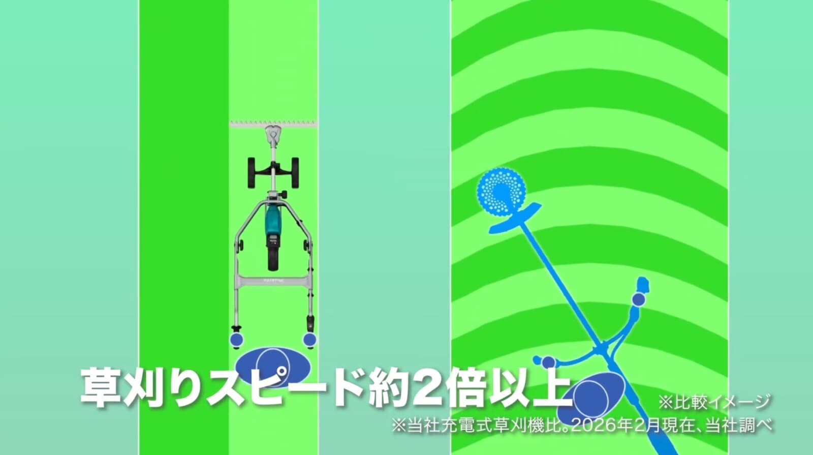電動工具を製造・販売する株式会社マキタ(本社:愛知県安城市)は、2026年2月に40Vmaxシリーズの充電式グラウンドトリマ MUG001Gを発売する。グランドトリマに手押し式のハンドルとタイヤが付いた専用モデルで500mmの刈込幅で広範囲の草刈りを効率的に行える。本体標準小売価格は83,700円(税抜)