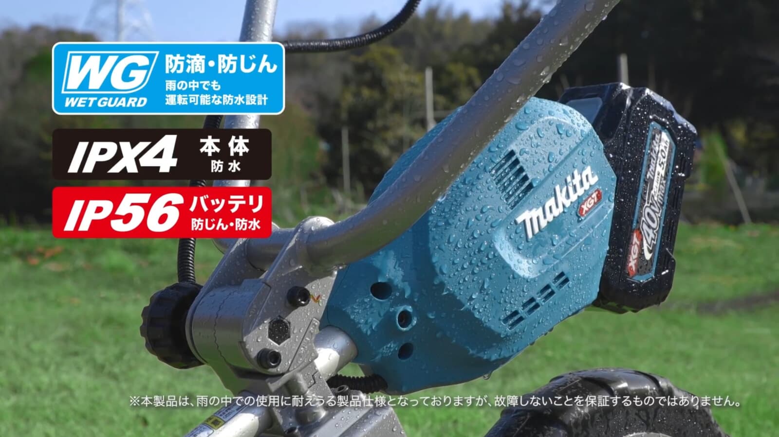 大型ハンドル+3輪タイヤを採用した意図は推測になりますが、個人的には高齢ユーザーを主要ターゲットの一つにしているように感じます。実際、マキタ公式YouTube動画では高齢者と思われるユーザーが本機を使用するシーンがあり、過去の同チャンネルではこうした例が多くなかったことから、高齢化が進む農家やシルバー人材センターなどを意識している可能性があります。