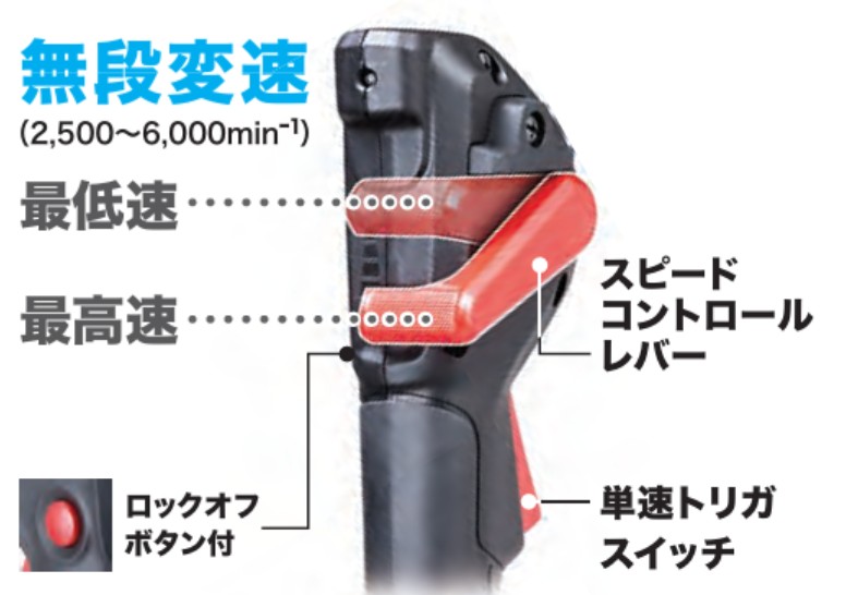 「新」スピードコントロールレバー採用により、手元を見ることなく「直感的に」速度調整を可能にします。