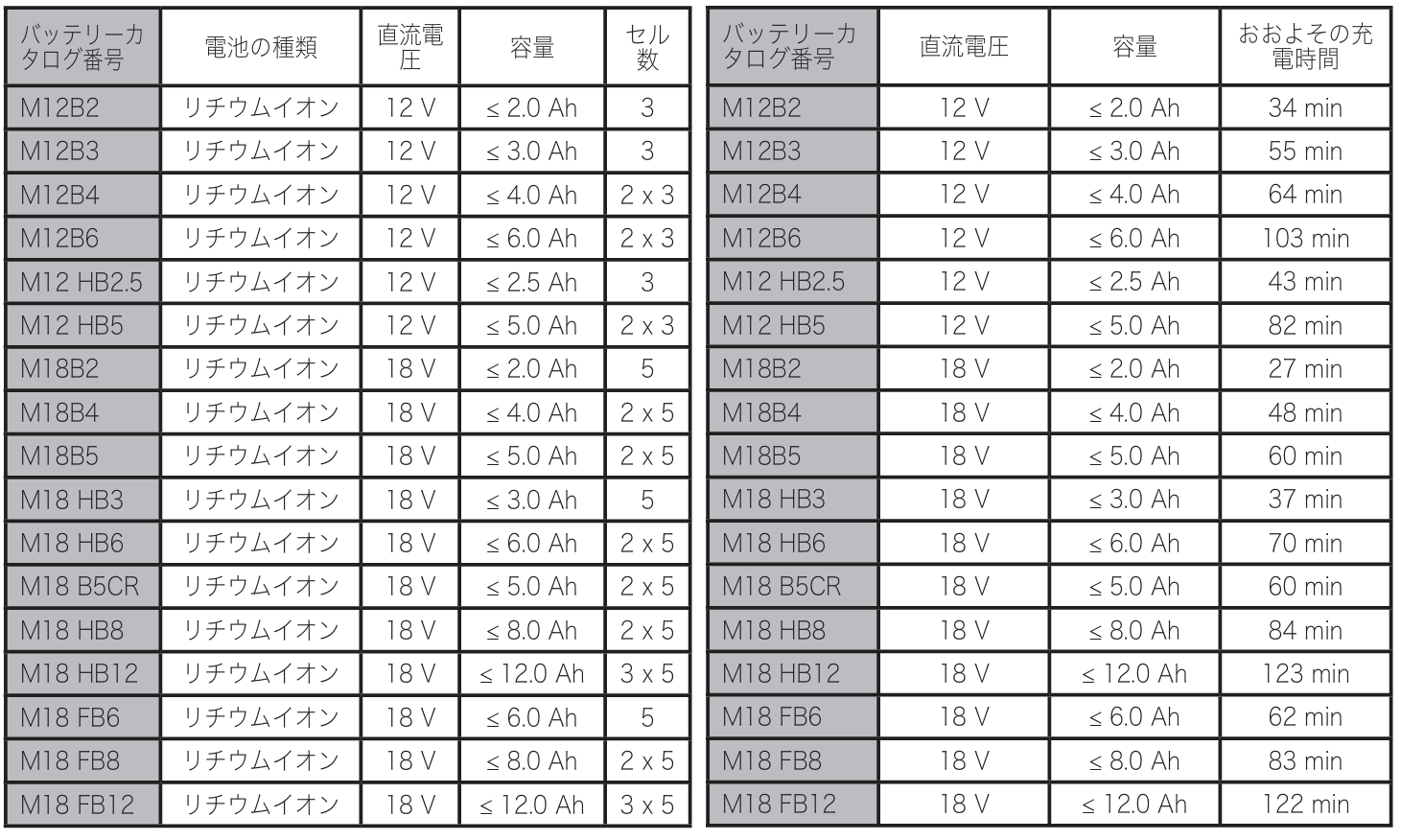 | バッテリー | M12, M18 |