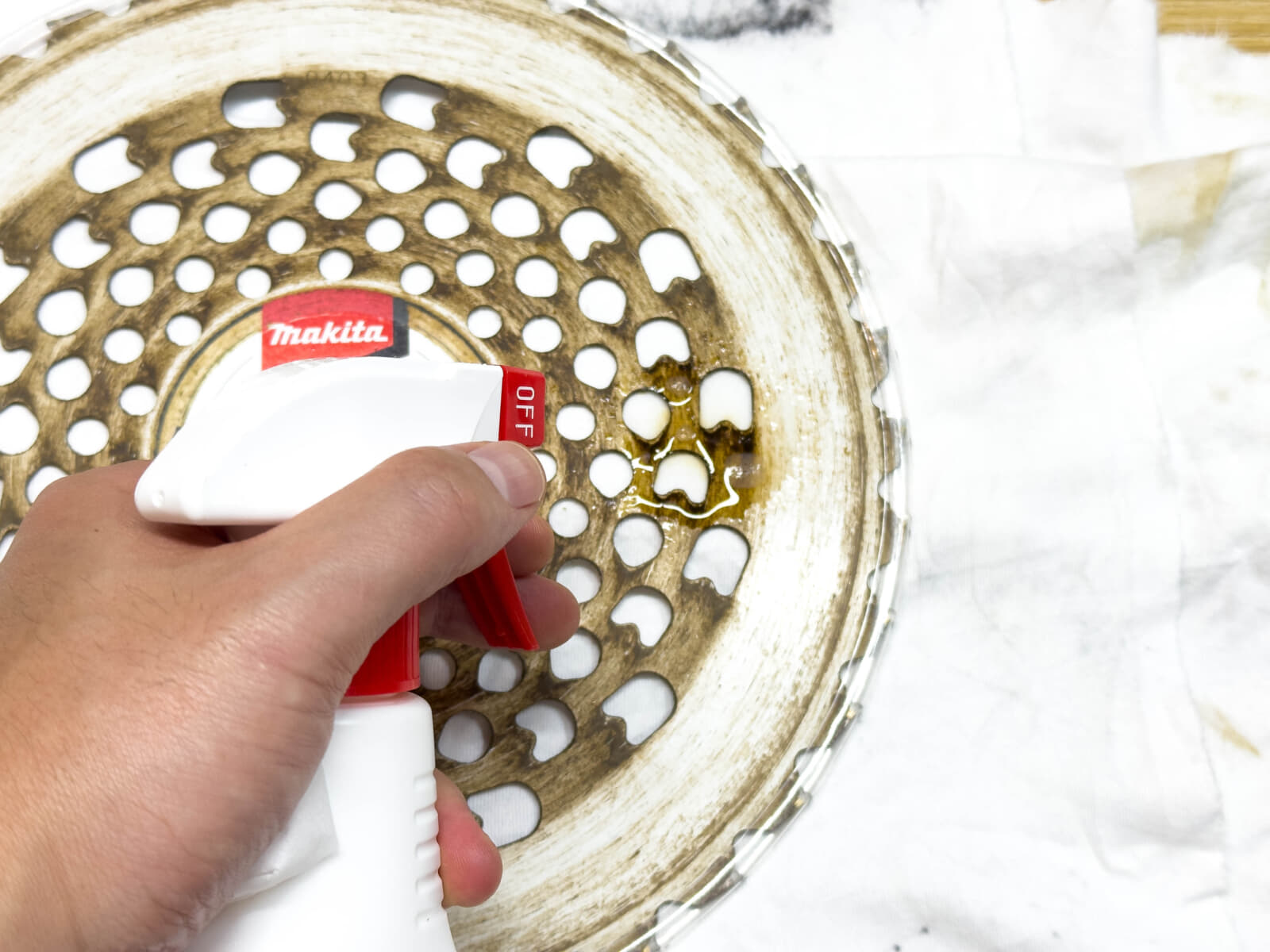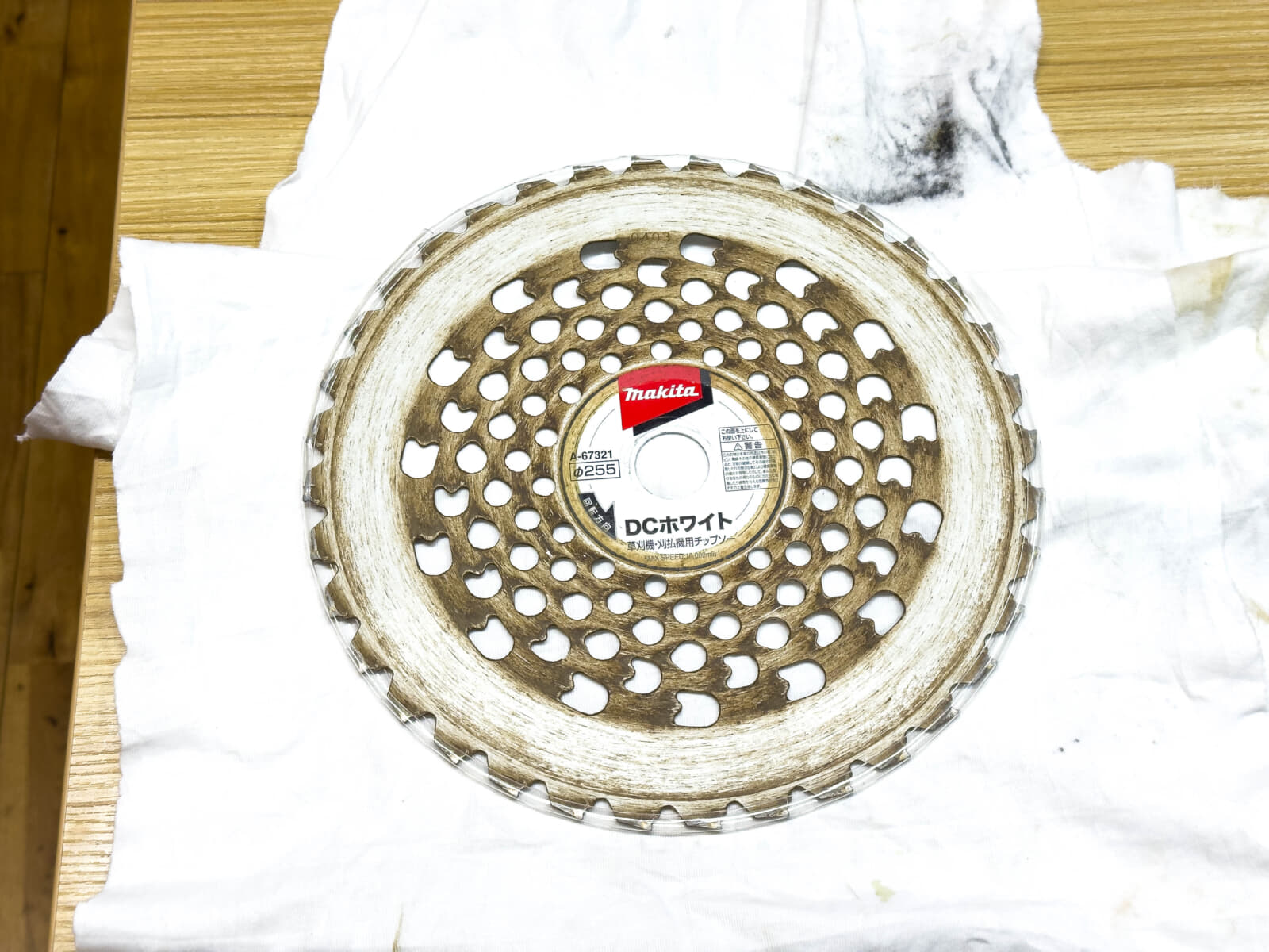 チップソーの汚れを取ることにあまり意味はありませんが、チップソーも綺麗にしてみます。