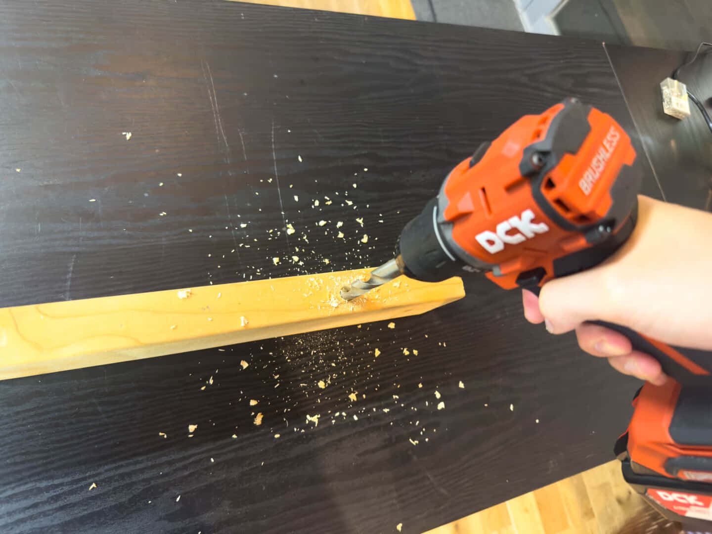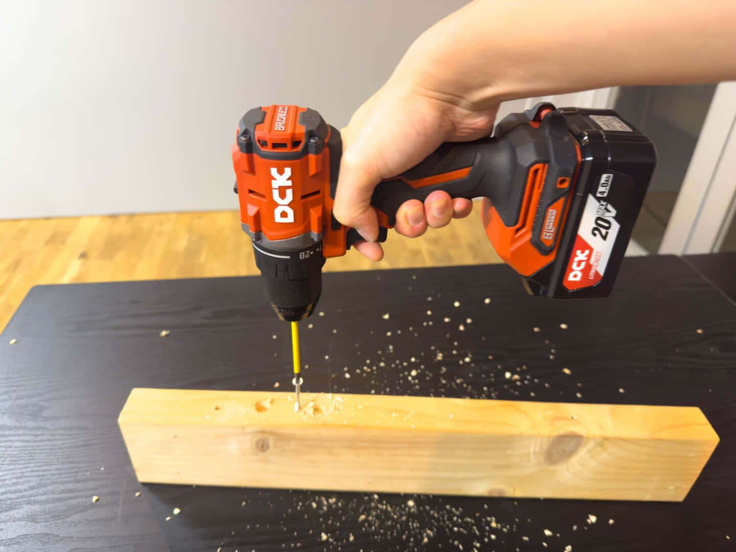 ドライバドリルが得意としているのは穴あけ作業です。穴あけ作業は材料に応じた適切な回転力を維持することが大事なので、強力で一定の回転力を持つドライバドリルは穴あけ作業に必須です。写真は木材に穴を開けていますが、鉄板や石材の穴あけもできます。
