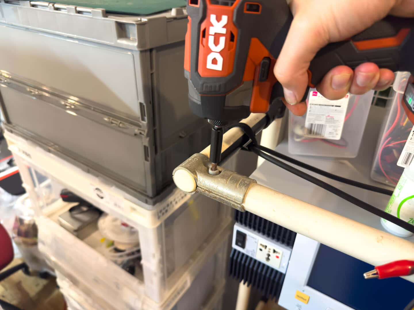 パイプ材の固定にはボルトナットが使われることが多いので、こういう時もインパクトドライバが役に立ちます。レンチ締めでは1本1本の締結に時間がかかってしまいますが、インパクトドライバを使うことで素早く組立・解体が行えるようになります。