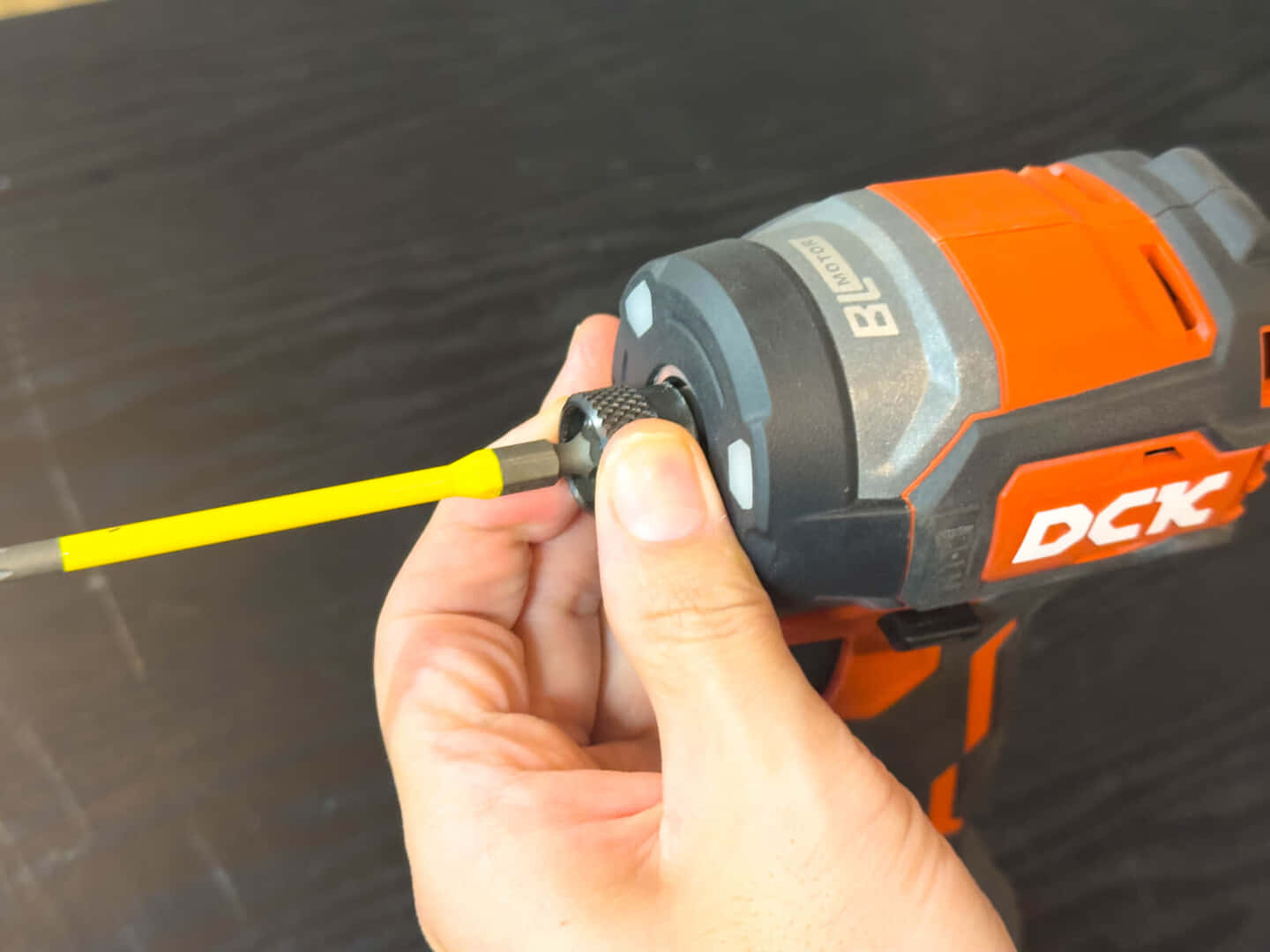 インパクトドライバは、六角軸のビットをスリーブに取り付けるだけのシンプルな構造が特徴の電動ドライバーです。
