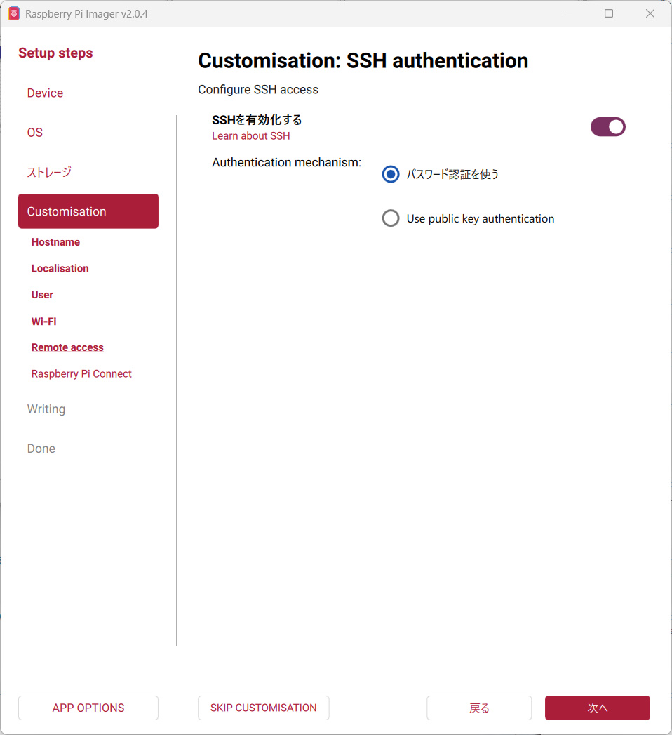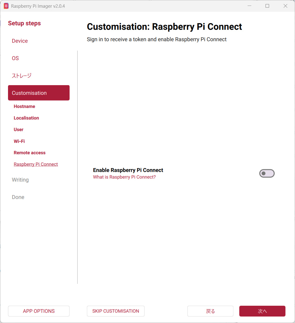 リモート操作のRaspberry Pi Connectはインストールしても画面はサイネージの画面になってしまうため、今回は使用しません。