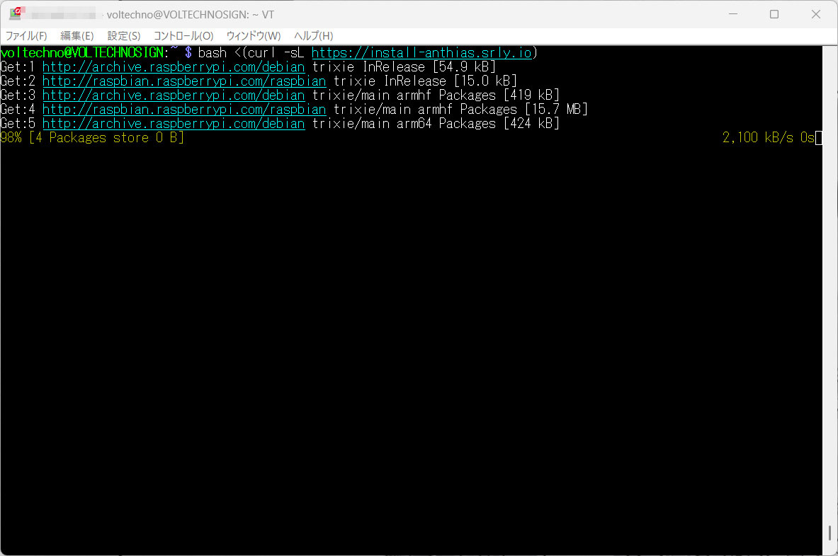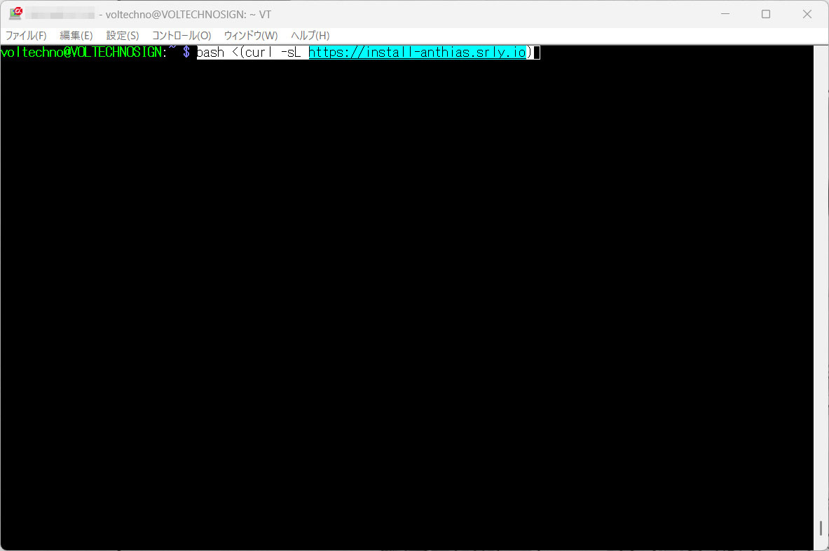 ログインができたら、以下のコマンドを入力するとAnthiasのインストールが始まります。