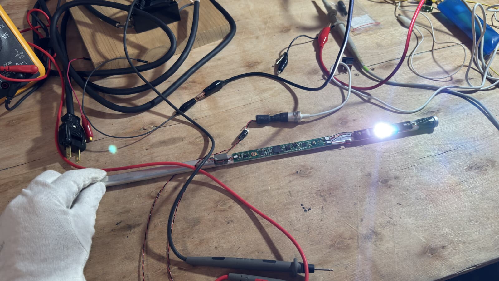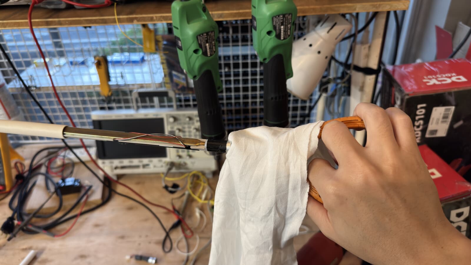 早速、STROKE2を分解します。LED、スイッチ、DCジャックはつなぎ目のない1本のパイプで構成されているので、パイプ内に収納されている回路を取り出さなければいけません。
