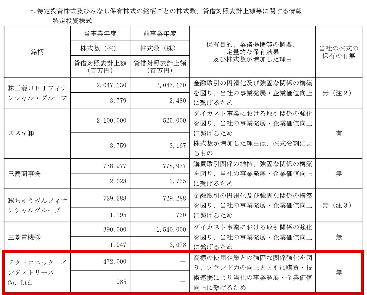 有価証券報告書 香港TTI株保有の目的を聞くために株主総会に出席
