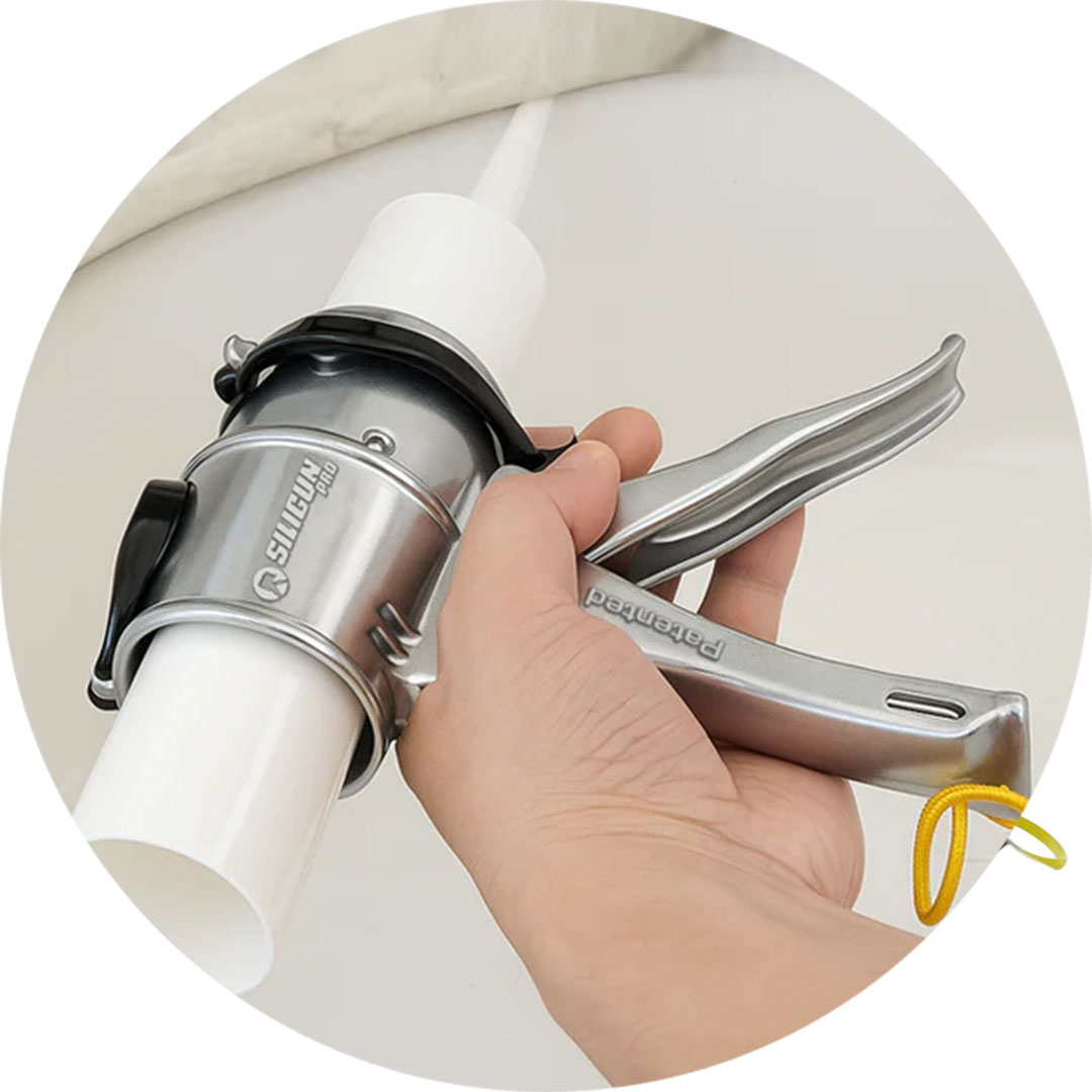 SILIGUNは、狭い場所での作業に適した“2台目のコーキングガン”として世界的に人気を集めていますが、一方で、レビューなどを見ると構造がやや複雑であることに加え、本体にABS樹脂を使用していることから、耐久性に不安を指摘する声も見られます。特に、粘度の高いコーキング材や硬めのシーリング材を使用した際に、本体へ大きな負荷がかかり、破損につながったとする報告もあるようです。