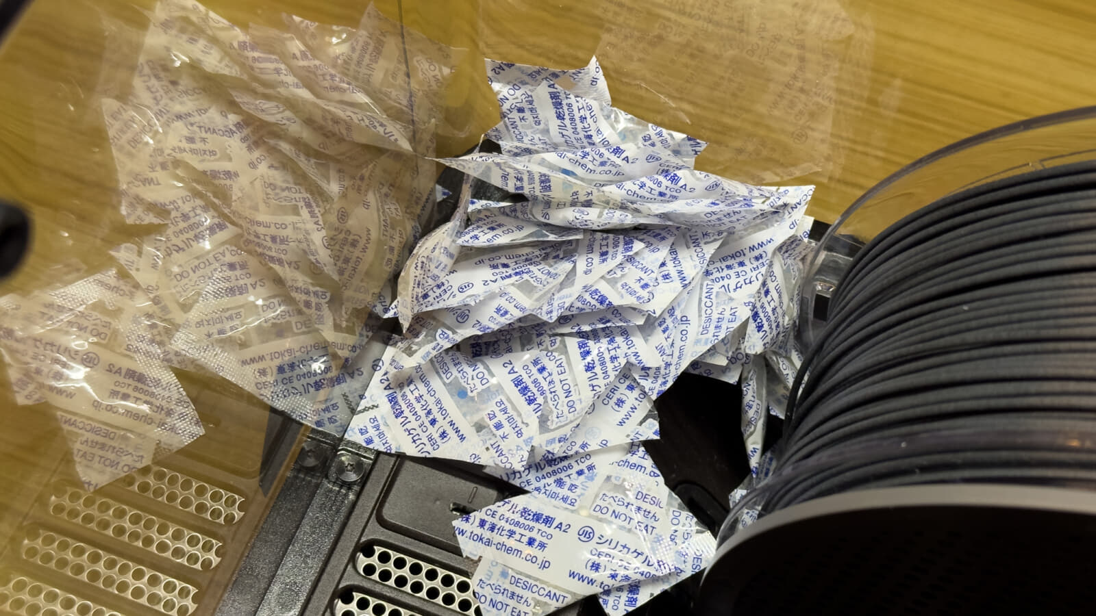 フィラメントドライヤーはフィラメントを乾燥させるための機械ですが、乾燥させたいものを入れれば何でも乾燥できます。そのため筆者はフィラメントと一緒にシリカゲルも一緒に乾燥させています。