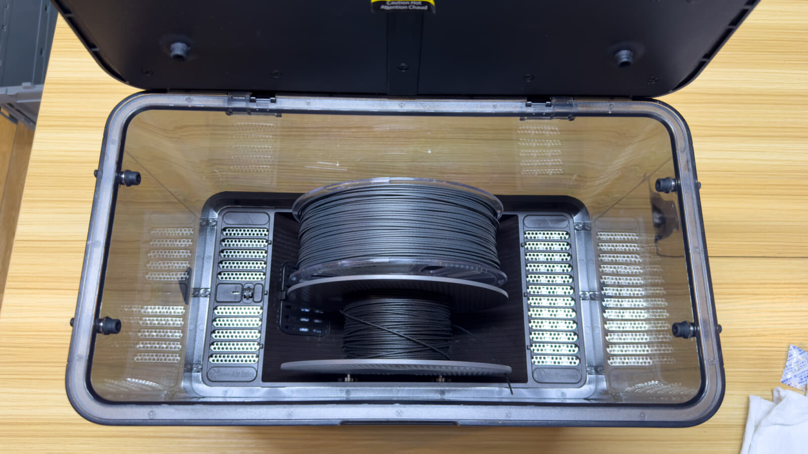 筆者もPLAやABSが中心なら不要だと考えています。一方で、PA-CFを使うなら70℃を超えるフィラメントドライヤーは必須だと思っています。