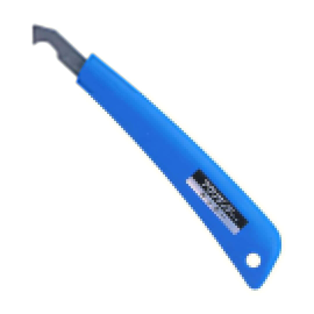 フック状の独特な刃を持つカッターで、主にアクリルやポリカーボネート、ABSなどの硬質プラスチック板の切断に使用します。普通のカッターと異なり、刃のフック部分で切削しながら切れ込みを入れて、最後に手で割ることで切断します。