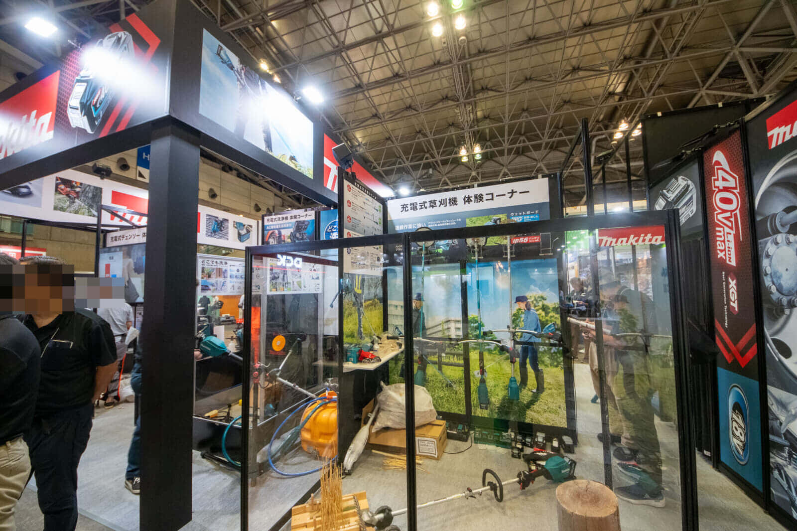こちらは農業Weekでの展示です。展示ブース内ではやまびこ ECHO 50V Batteryアライアンスのコードレス製品が展示されていました。