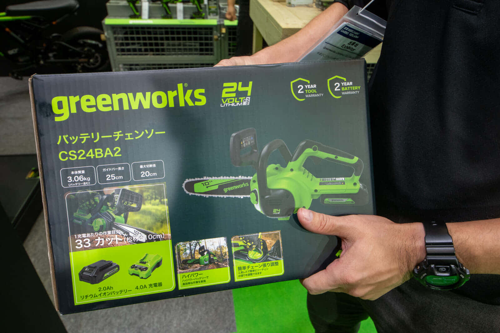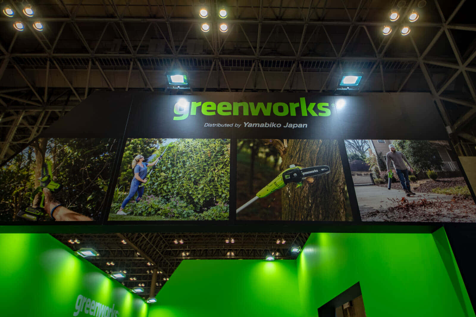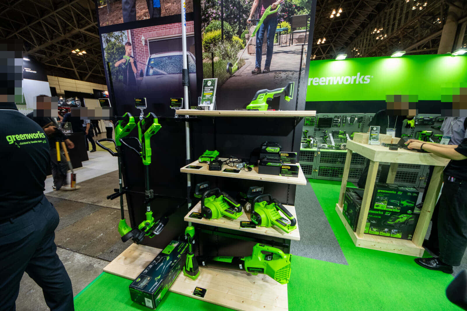 例年、TOOL JAPANで展示を行っているgreenworksブースが、やまびこジャパンで展示していました。