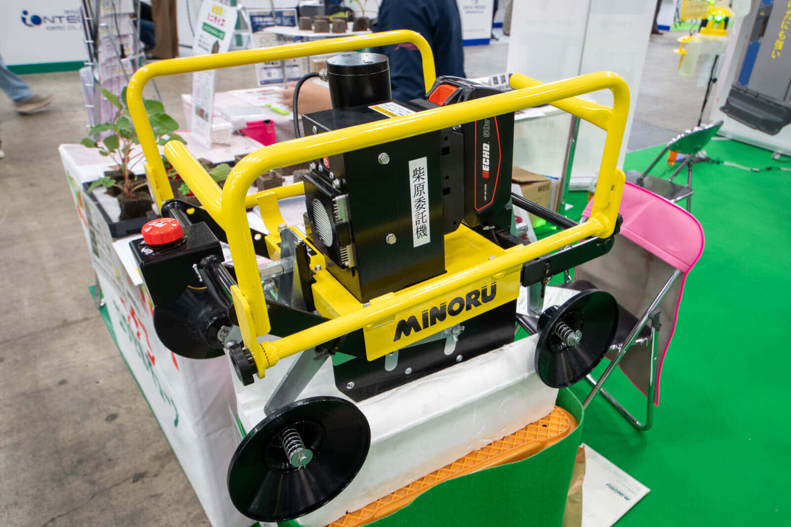 50V Batteryアライアンスは、昨年の農業Weekでやまびこが提唱していたバッテリー共通化アライアンスです。昨年、みのる産業株式会社は自走式マルチチェアーを展示していましたが、今年はプチ耕耘機を展示していました。