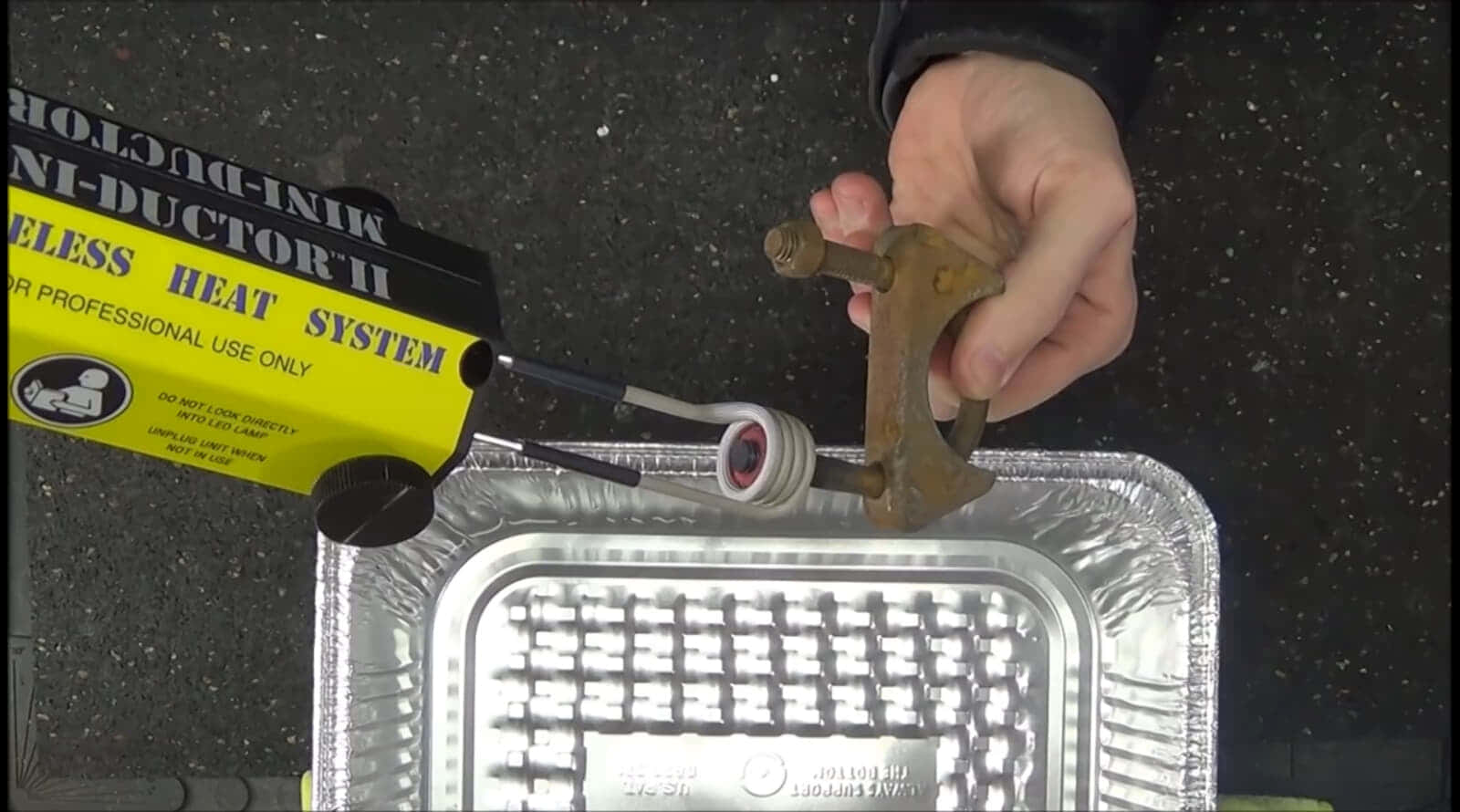 誘導加熱ボルトリムーバーの使い方はシンプルで、径の合ったコイルに通して電源を入れるだけです。