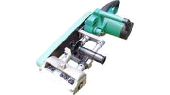 丸太はつり機が搭載する強力なモーターと電動かんなに近い形状の切削刃物によって丸太の皮を切削しながら皮むき作業を行います。