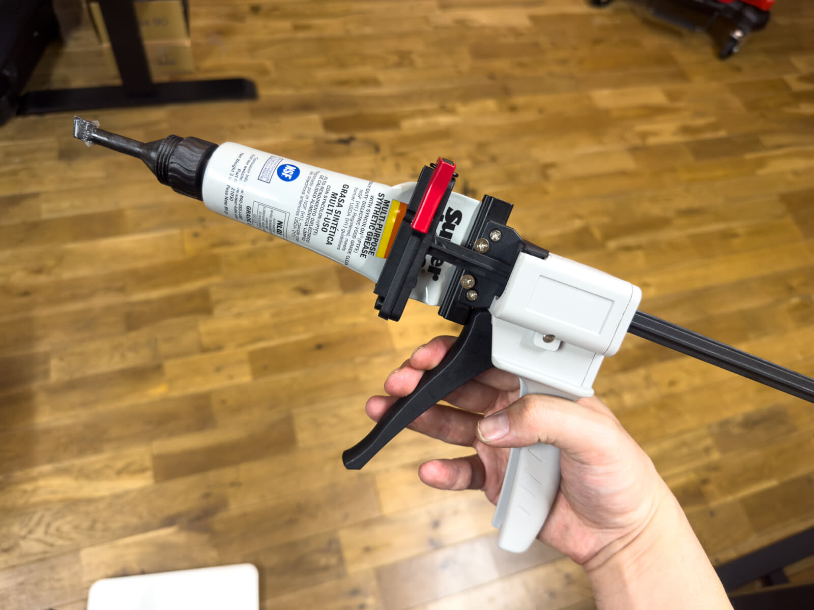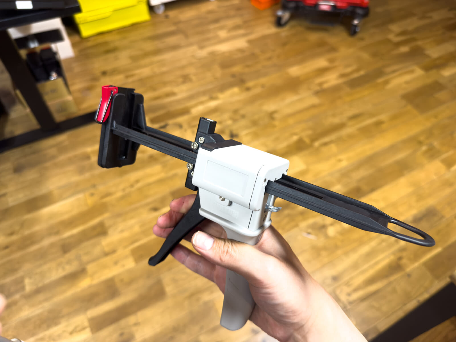 接着剤やグリスなどを手配する時、ほとんどの方はチューブ容器に入ったものを買うと思います。今回紹介するのは、チューブをトリガー操作で吐出できるチューブディスペンサーです。